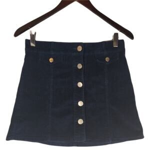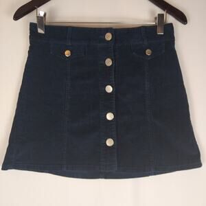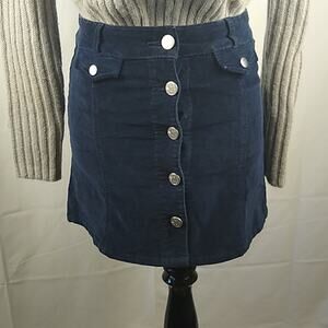 BDG for Urban Outfitters Navy Needlecord Mini Skirt Size 2 with Front button closure, two small front pockets, with flap / press-stud closing. Belt Loops. In great preowned condition. Perfect skirt for fall - team with boots and a sweater - you'll be looking great and ready for anything.