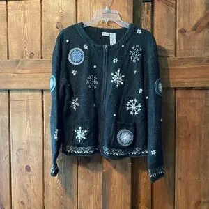 NorthCrest Snowflake Zipper Cardigan Sweater. Excellent condition. Size XL. Chest measures about 20.5”, waist 20.5”, length 22.25”, sleeve length 23.5”