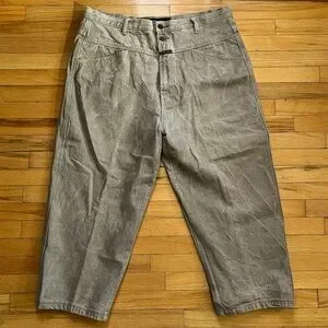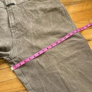 Tagged as 42M. Fit as 42x25. Check outseam for total length measurement. Could be used for cutoff shorts if preferred.