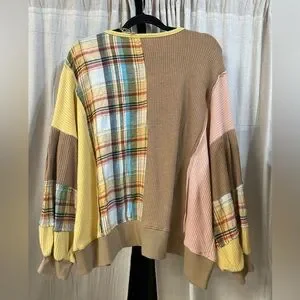 NWT Easel LA Plaid Patchwork Thermal LS Top