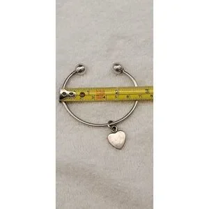 Sterling Removable Ball Bangle, Keychain with Heart Charm Heavy VTG Bracelet