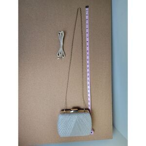 gold evening bag with chain or cord strap