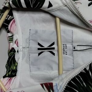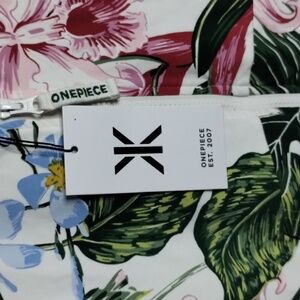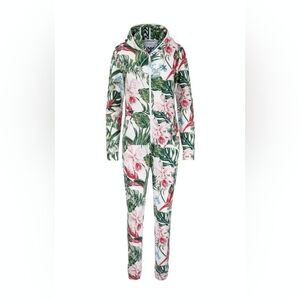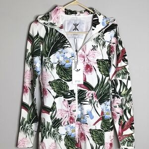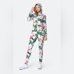 New with tags Norwegian Onepiece Tropicana Slim hoodie jumpsuit size M. More fitted slim fit than the regular unisex fit. Off white with tropical allover print.