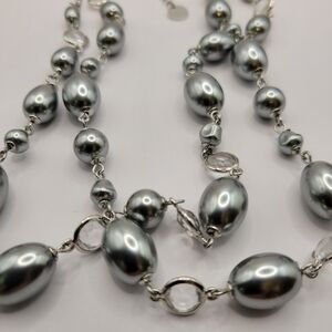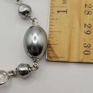 Talbots double strand silver heavy oval bead necklace bezel set clear rhinestone