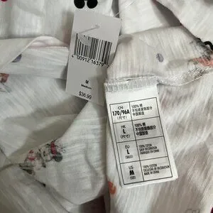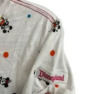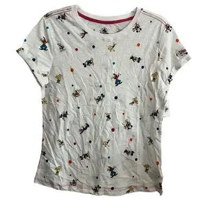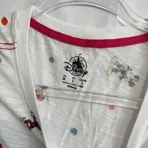 NEW DISNEY PARKS DISNEYLAND TEE SHIRT WOMENS MEDIUM WHITE POLKA DOT CHARACTERS