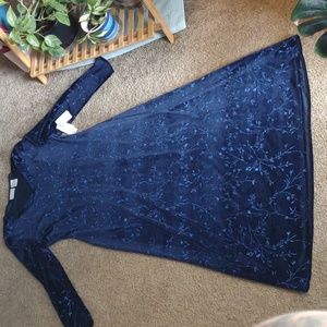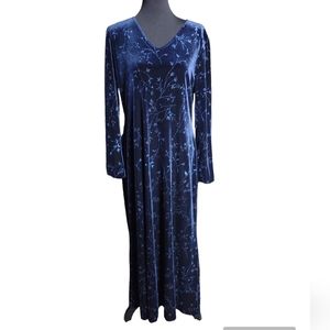 Worthington Blue Glitter Leaf Vine Velvet Long Maxi Dress NWT Practical Magic