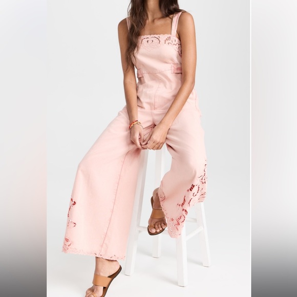Your new favorite one-and-done outfit, this chic jumpsuit is featured in a soft fabrication and lightweight design with cool cutwork detailing and feminine scalloped trim.