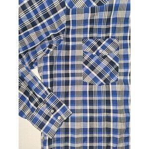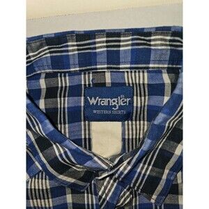 Wrangler Western Shirts Pearl Snap Plaid Blue Checked Button Shirt Men's Size XL