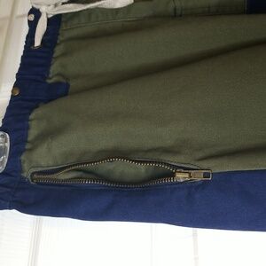 belted, skater pants, break pants, colored denim, green, yellow, navy waist, blue, color block, street wear, jeans, shoestring tie waist, the, cargo pants, mens, Womens, bikercore, retro, streetwear, two-tone, dark green, army green, activewear