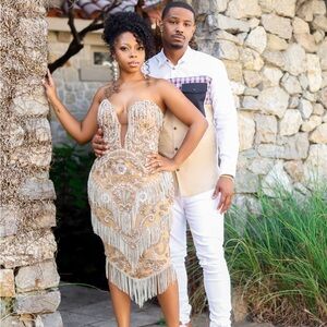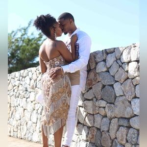 I purchased this dress for my engagement pictures and only wore it once for just a few hours. I will say it’s rather heavy from all the beading and tassels but it’s a beautiful special occasion dress! And you can have the mesh replaced to match your skin tone like I did :)