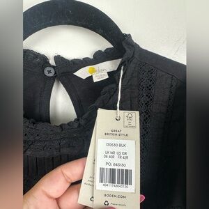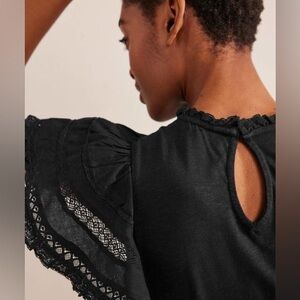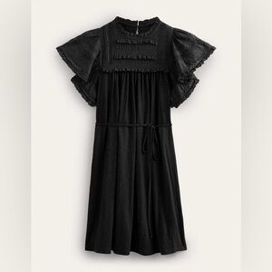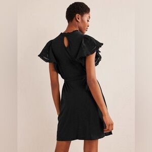 NWT Boden Black Trim Detail Flutter Sleeve Jersey Mini Dress Size 10