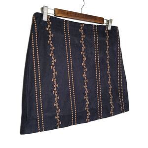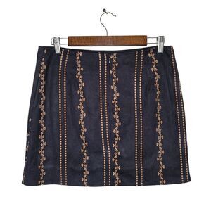 Altar'd State | Black Suede Embroidered Mini Skirt | Large