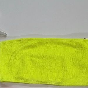 Bright yellow bandeau top with detachable strap .