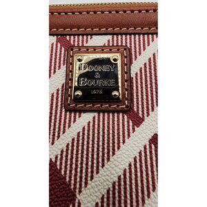 Rare New Dooney & Bourke Cranberry Red Ivory Plaid Wristlet Handbag Gold…