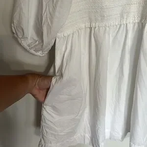 Crisp, white cotton dress by American Eagle. Puffed sleeves and pockets!!