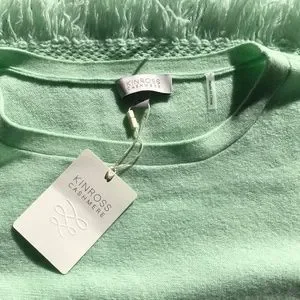 Kinross Cashmere Pointelle Fringe Trim Sweater NWT