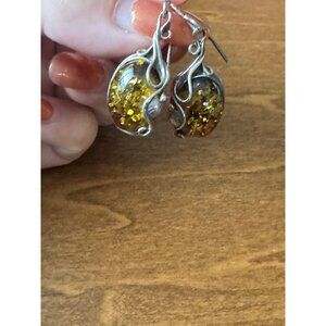 Elegant Vintage Amber & Sterling Silver Earrings Dangle Hook