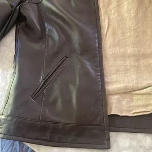 Chocolate Brown with Linen lining. In excellent condition. Pockets in front. Size Medium. In excellent condition and perfect for Fall/Winter! Smoke Free Home. 😊
