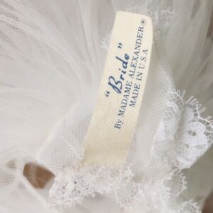 Vintage Madame Alexander 8 inch Bride Doll with Blonde hair. Does not come with original box. I do have other Madame Alexander Dolls in other listings that do come with original box. Also Barbie's in original boxes too.