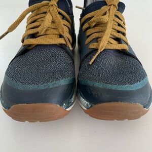 Amazing pair of rugged shoes that look worn maybe once or twice. Small amount of cosmetic wear along the blue edges, otherwise, perfect.