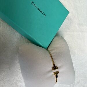 TIFFANY T WIRE BRACELET 18K Rose Gold, Size Medium.