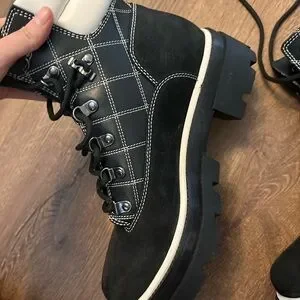 Tory Burch Miller Lug Hiking Boot with White Quilting