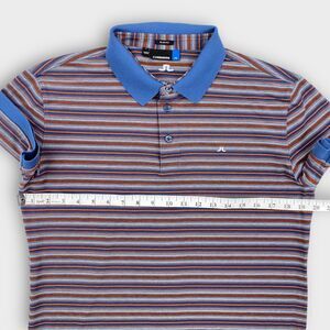 $115 J Lindeberg Polo Shirt Mens Large Striped Dev Slim Lux Pique Logo Golf