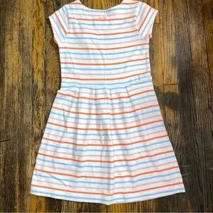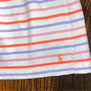 Joules cream, melon, periwinkle, and pink striped dress with flower size 9-10 y