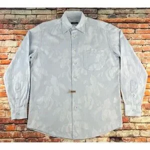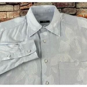 Zanella Harold Mens M Blue White Floral Design Button Down Long Sleeve Shirt