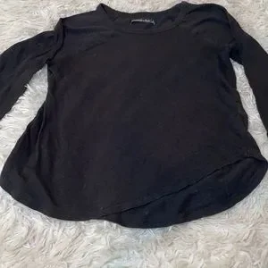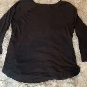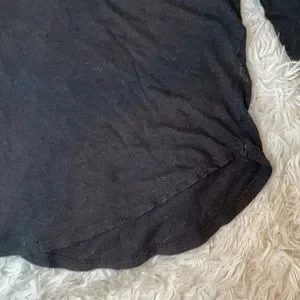 Off set bottom hem. 3/4 sleeve. T-shirt material. Great condition:)
