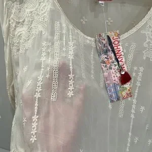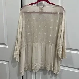 Johnny Was Classic, Vintage Ivory Embroidered Sheer Top, NWT