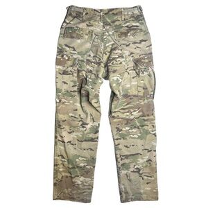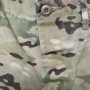 Propper Camo Cargo Pants, used and worn more than a handful of times. Since the quality is so great and durable the item has plenty of life left. 4 buttons, and two adjustable waist straps which are all in good condition. Wear and tear is some small holes and lil tearing that looks cool and vintage almost. Total of 6 pockets.