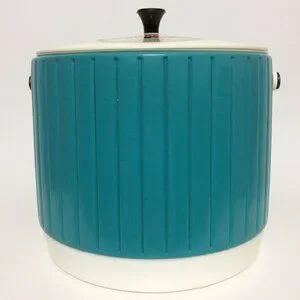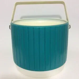 Vintage Thermos Plastic Ice Bucket Teal White Bar Restaurant Man Cave Decor