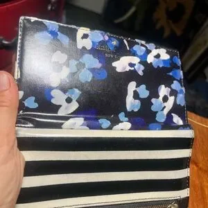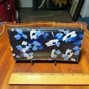 💃 Kate Spade NY Floral Slim Wallet Black Blue Floral Snap A21