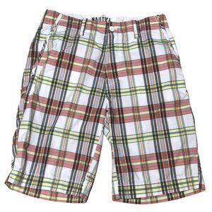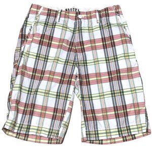 Nautica Jeans Co Shorts Mens 30 Waist Plaid Flat Front Pockets Bermuda Golf Vaca