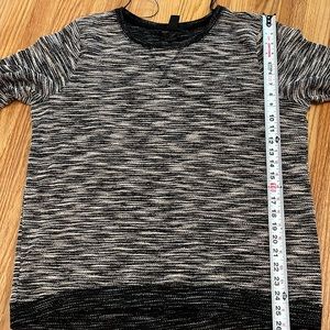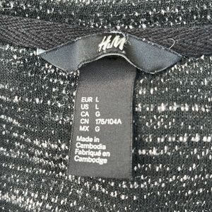 H&M | 3/4 sleeve high-low cotton knit sweater in marled black & cream, large