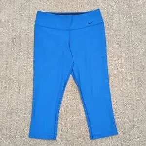 Nike Dri-Fit, Capri leggings. in the photos. These are a size medium in a gorgeous blue!