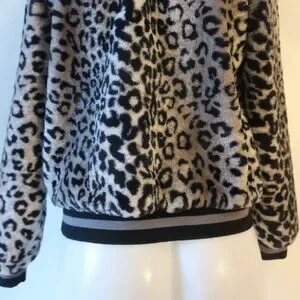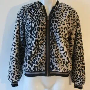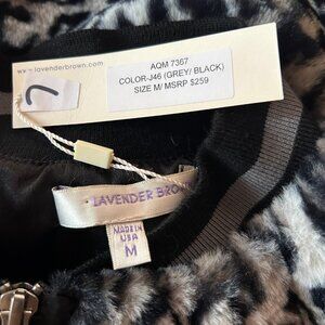 NWT Womens Lavender Brown Gray Black Animal Print Faux Fur Bomber Jacket M *