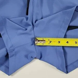Excellent pre-owned condition, ZYIA Active women's blue athletic inlined shorts with 2 side pockets, elasticized waistband with tie, quickdry stetch fabric and 3.5" inseam, size Large.