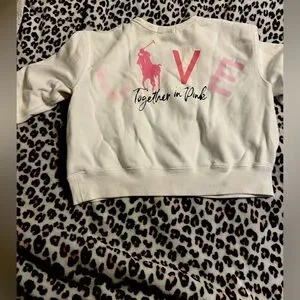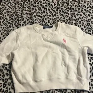 Super cute sweatshirt by Ralph Lauren POLO! White sweatshirt with Pink Polo horse and pink LOVE sign on back of shirt!
