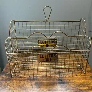 Brass Wire Desk Mail Holder Letters In & Out Basket