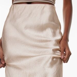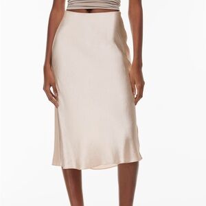 Features: elastic waist band, a bias cut and a darted back for shaping. Made of wood-based fibres