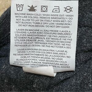 Gently worn, no stains or tears. See photos for details. There are two small holes on the front right, towards the waist. Please see photo.