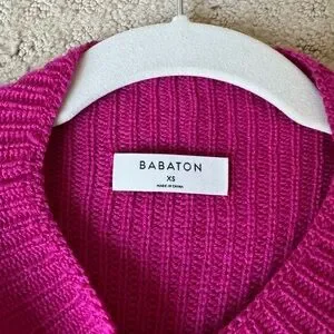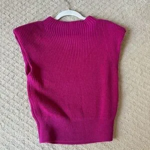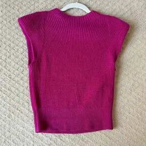 Size XS sweater vest. Has shoulder pads. Magenta color. Great condition, besides a rip in the sweater on the back top right.