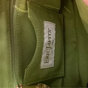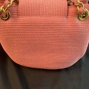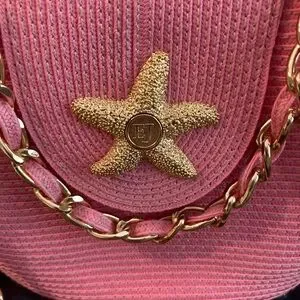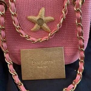 Very lightly used Eric Javits New York mini squishee star handbag. Featuring natural material, gold hardware, 7 inch drop shoulder strap, starfish logo emblem, magnetic snap closure, fabric lining, inside center divider, zip and open pockets with mirror. Nice Nautical look, with a star fish on the front.