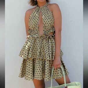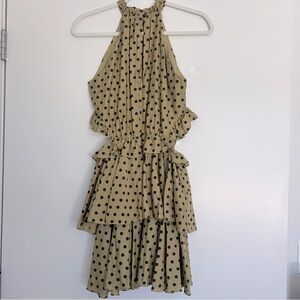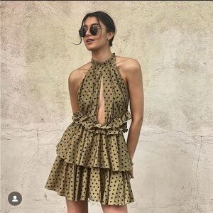 NWOT Mon Renn olive polka dot Roselyn ruffle mini dress