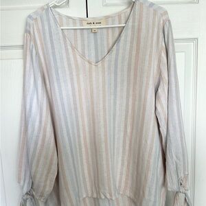 Cloth & Stone Anthropologie Linen Blend Sparkle Striped Top Tie Sleeve-V Neck-XL. Created in Lisa Angeles. Very pretty top. In very good preowned condition.