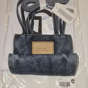 Featuring a double strap (handles and cross-body straps), embossed logo, debossed real leather patch, contrast top stitching and zipper closure. Made from washed denim with twill lining. Bag is packaged in a drawstring bag with screen-printed logo.