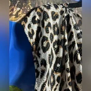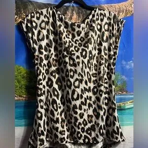 EMALINE Leopard Sleeveless Top Draped Neckline Size L