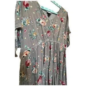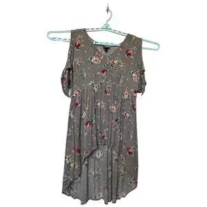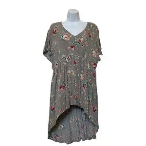 Torrid Floral High-Low Top Dress Size 1 100% Rayon Gray Red & Yellow Flowers